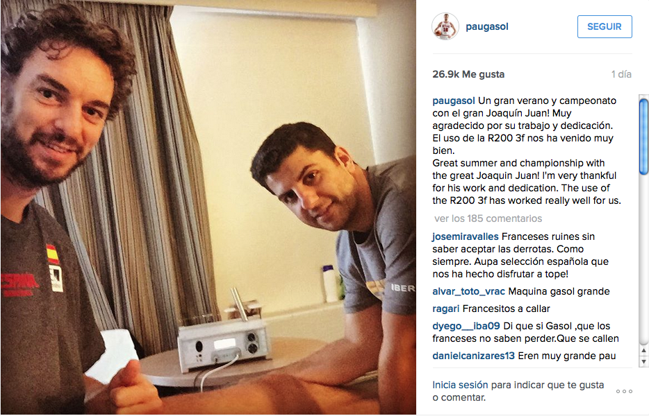 Pau Gasol ante las insinuaciones de dopaje vertidas por Le Monde, ha colgado una fotografía en su cuenta de instagram, en la que da las gracias a su fisioterapeuta y a lo bien que les ha venido el uso de la R200 3f.